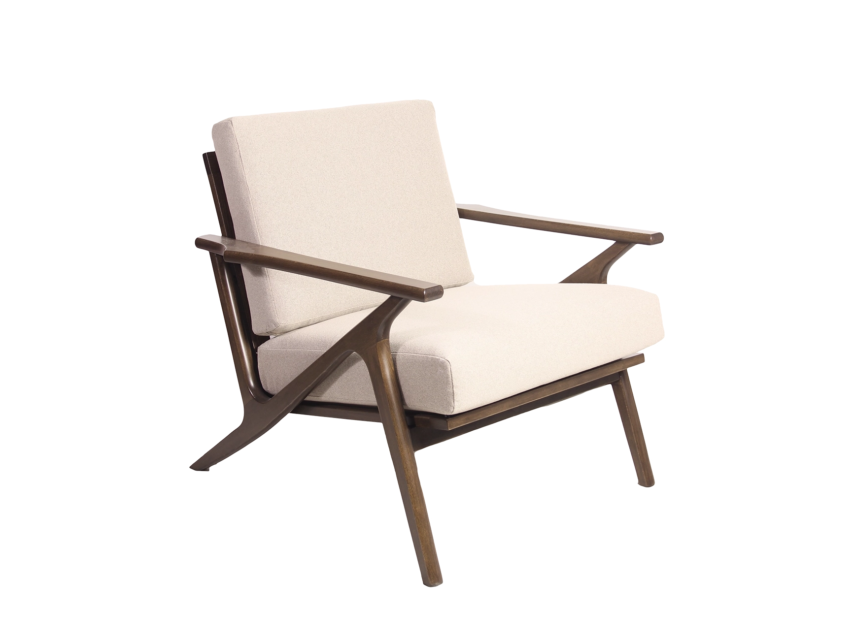 Chaise longue en chêne massif de style moderne du milieu du siècle. Un accent rétro élégant avec un cadre en noyer foncé massif, disponible dans une large gamme de tissus d'ameublement.