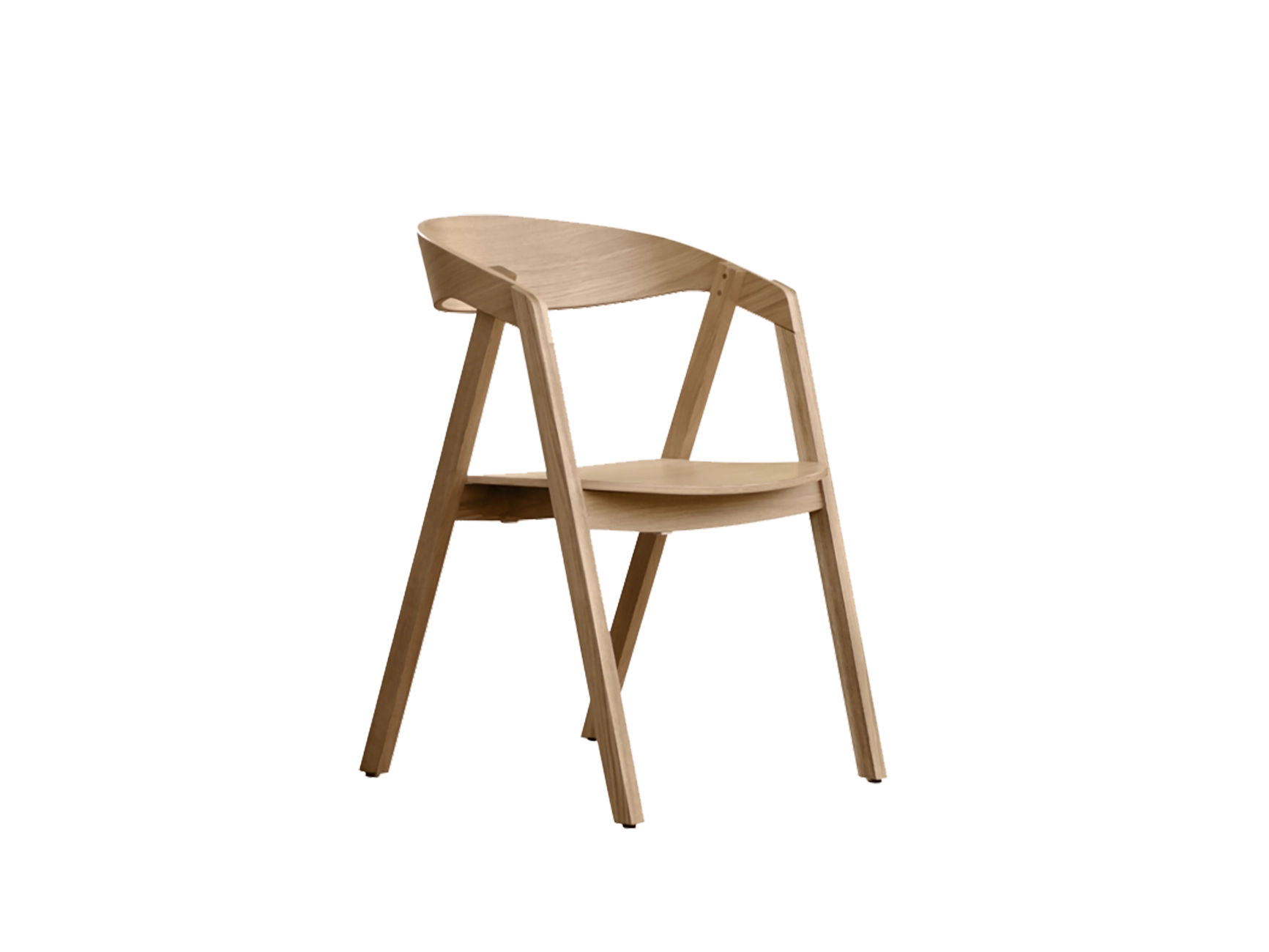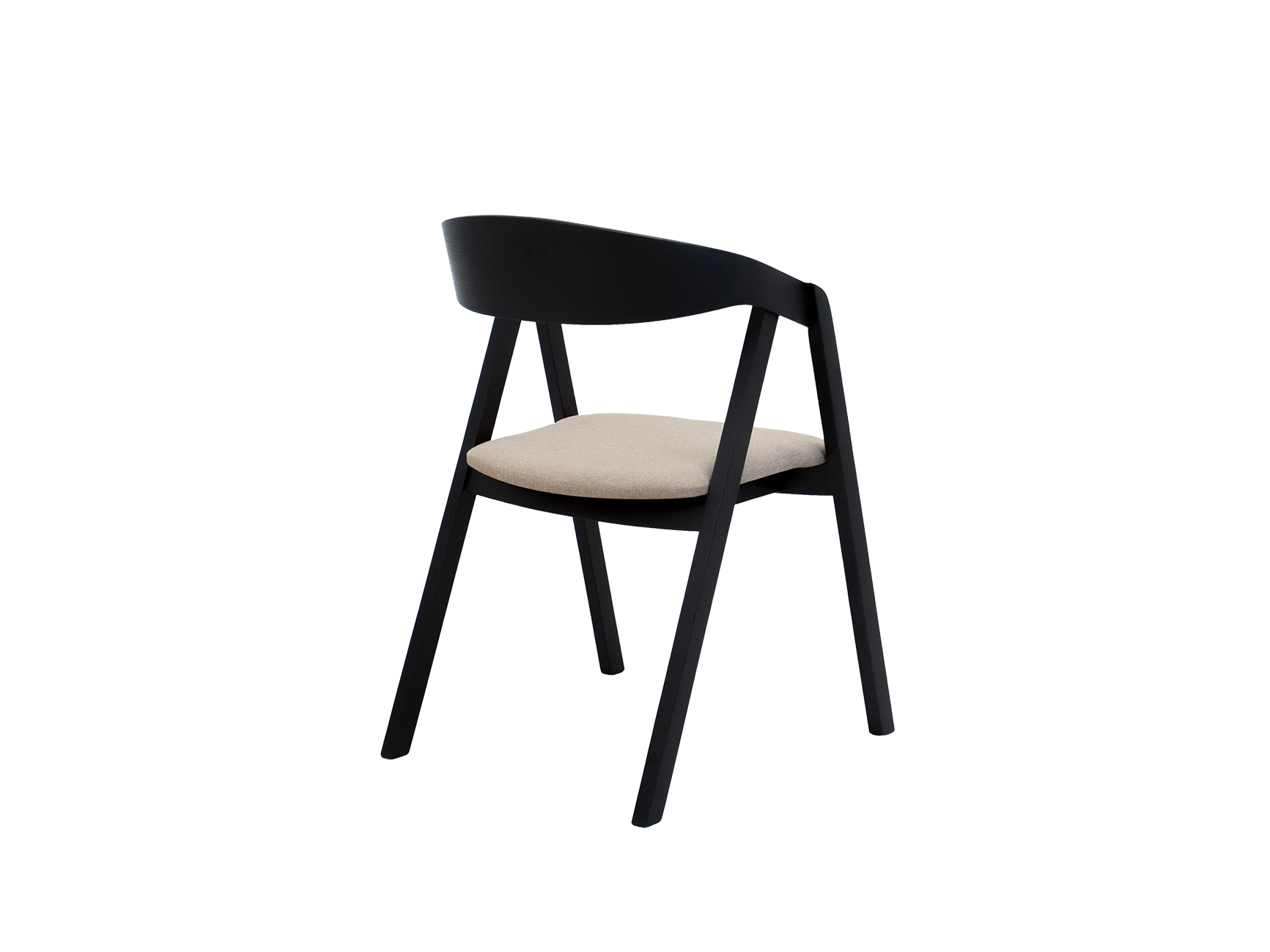 With flared legs and a flawless silhouette, the mid-century modern design of this stackable padded chair is expressed through the clean lines and simple upholstery. Available in our standard finishes and fabrics. It is durable and stable by nature, proving this piece was crafted using high-quality materials and built for longevity. The curved-style backrest features narrow plain tufting and curves downward toward the front of the armrests. Available with an upholstered seat, upholstered seat and back or as an all-timber piece.