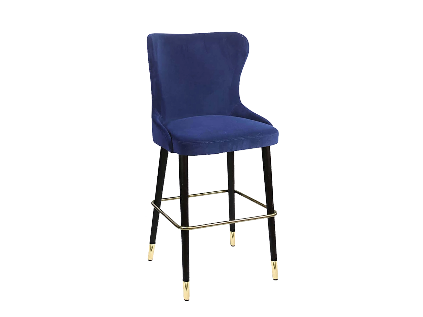The Charleston bar stool features a fully upholstered, padded seat and back, with tapered wooden legs and crossbars that give the barstool complete stability and strength. This high-back fabric barstool exudes quality and presence with its curvy silhouette and a nod to the popular wing chair design. Providing a luxury seating experience, the fully padded back encroaches around the sides, helping to give the seat pad maximum comfort.