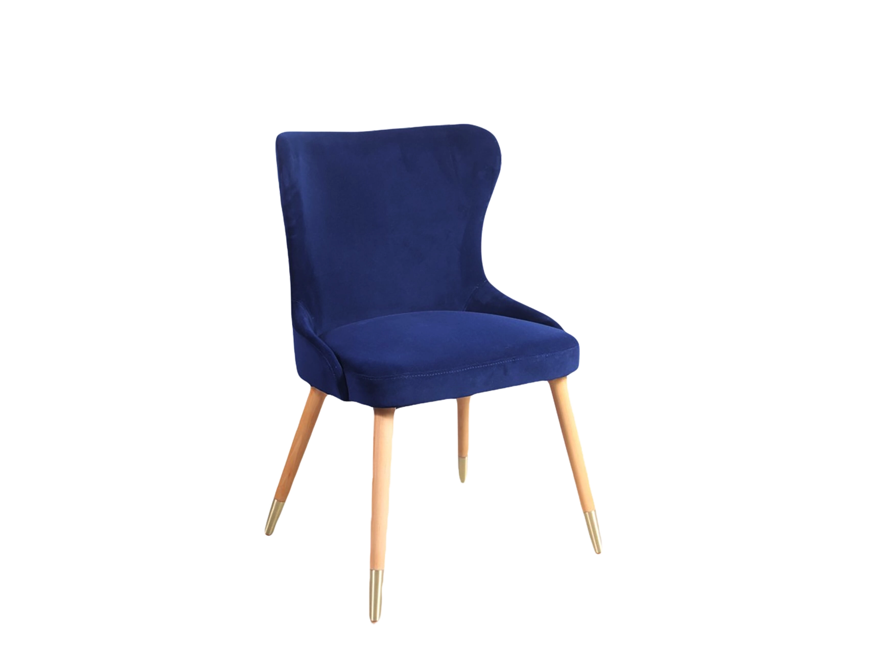 This stylishly upholstered side chair without arms has a simple but appealing design. The Charleston Side Chair provides a comfortable seat and back, and the curved shape has a modern look but a timeless feel. Another stand-out feature of this attractive upholstered side chair is the beechwood legs. The legs' light wood tone is a beautiful contrast to the blue fabric. In addition, the wooden base is available in standard stains or a metal star base.