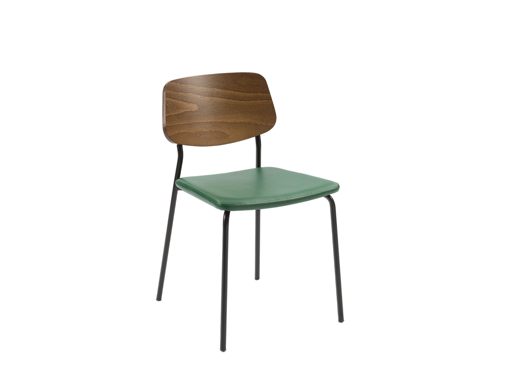 A sturdy stacking side chair made from a durable metal frame, powder-coated in matt black. An oak veneered plywood shell seat and backrest give it that industrial flair. Choose from either an upholstered seat and back option or a wooden seat and back option, a perfect complement to any contemporary dining table. This metal frame, slat back side chair scandi style makes it easy to incorporate into any existing colour scheme or design theme.