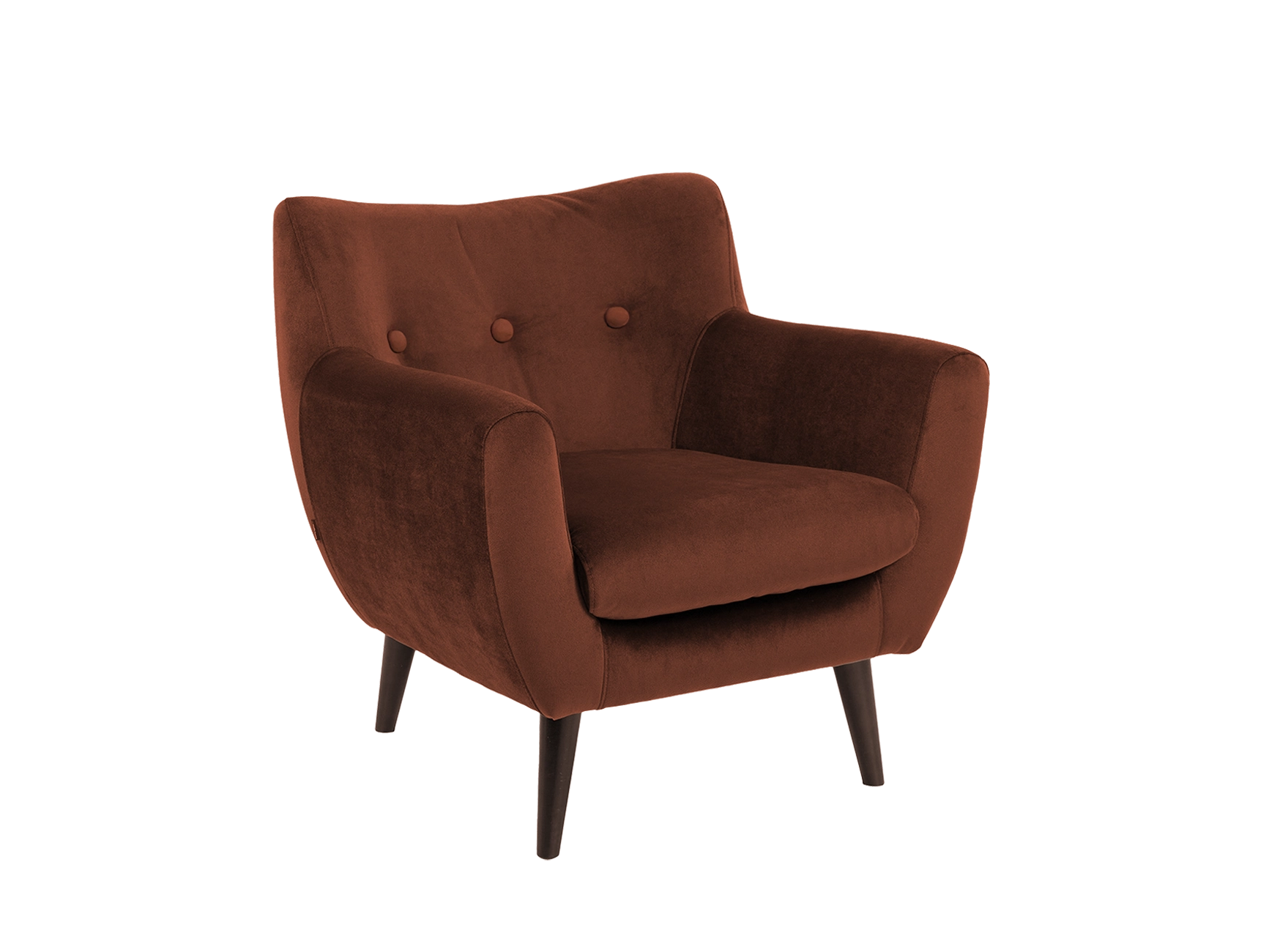 Contemporary and comfy! A low back armchair with button detail and beech feet. Clean lines and simple designs make the Compton Armchair a real showstopper. Bucket-like framework showcases flared track arms and smooth upholstery while the wooden legs of this low back armchair not only acts as a sturdy base but also adds a stylish touch. Push the boundaries of imagination and creativity by choosing bold colours from our fabric ranges for your upholstery requirements.