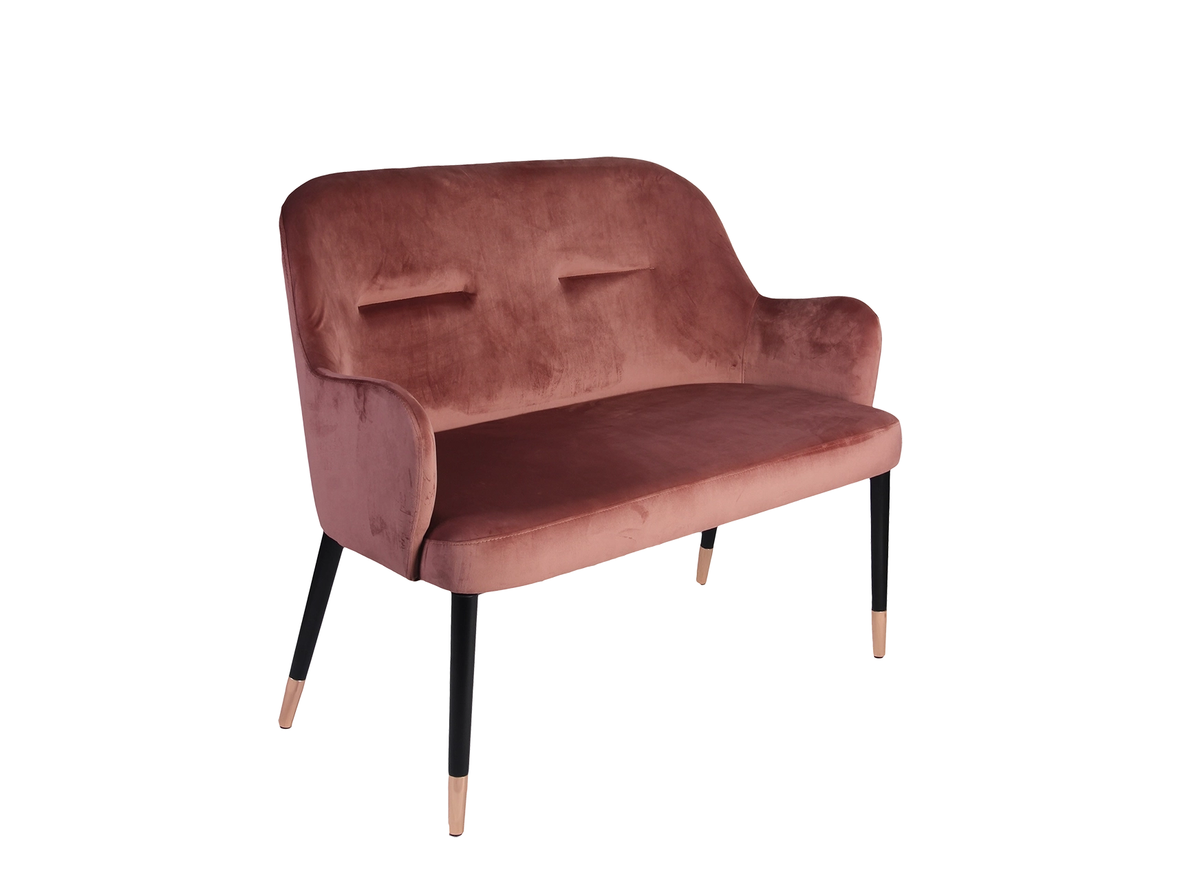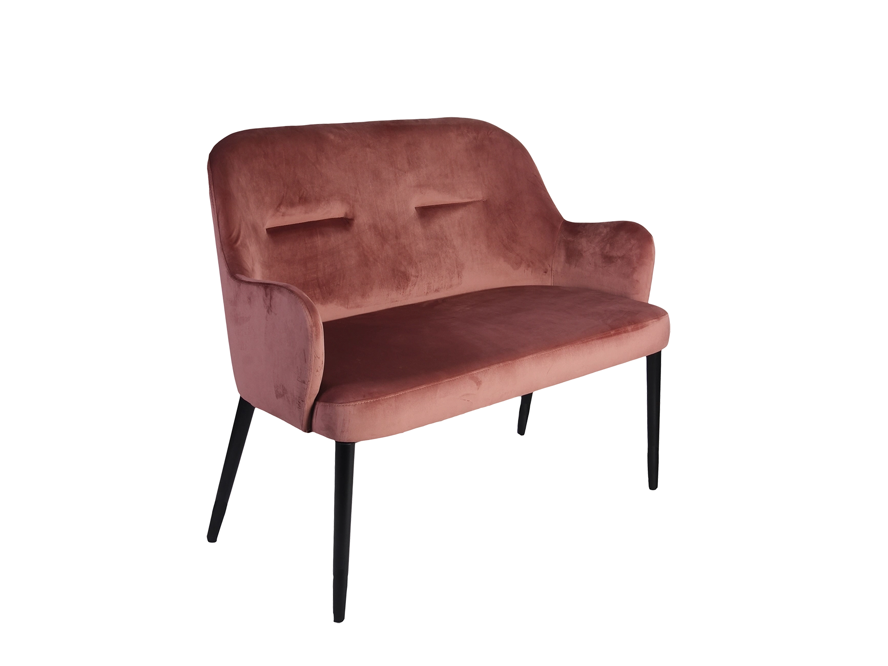 A small two-seater sofa with a wooden frame. Elegant yet practical, the Geneva sofa features a light yet durable construction upholstered in soft velvet with decorative tufting. Place in a hotel living room, hallway or bedroom for stylish additional seating.