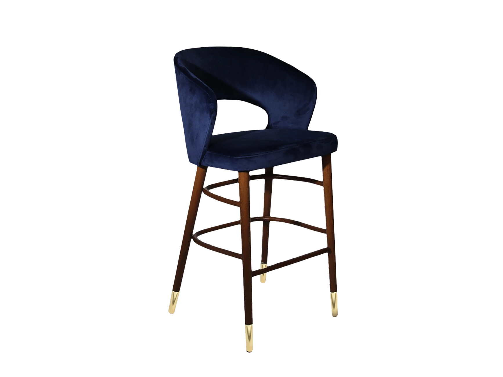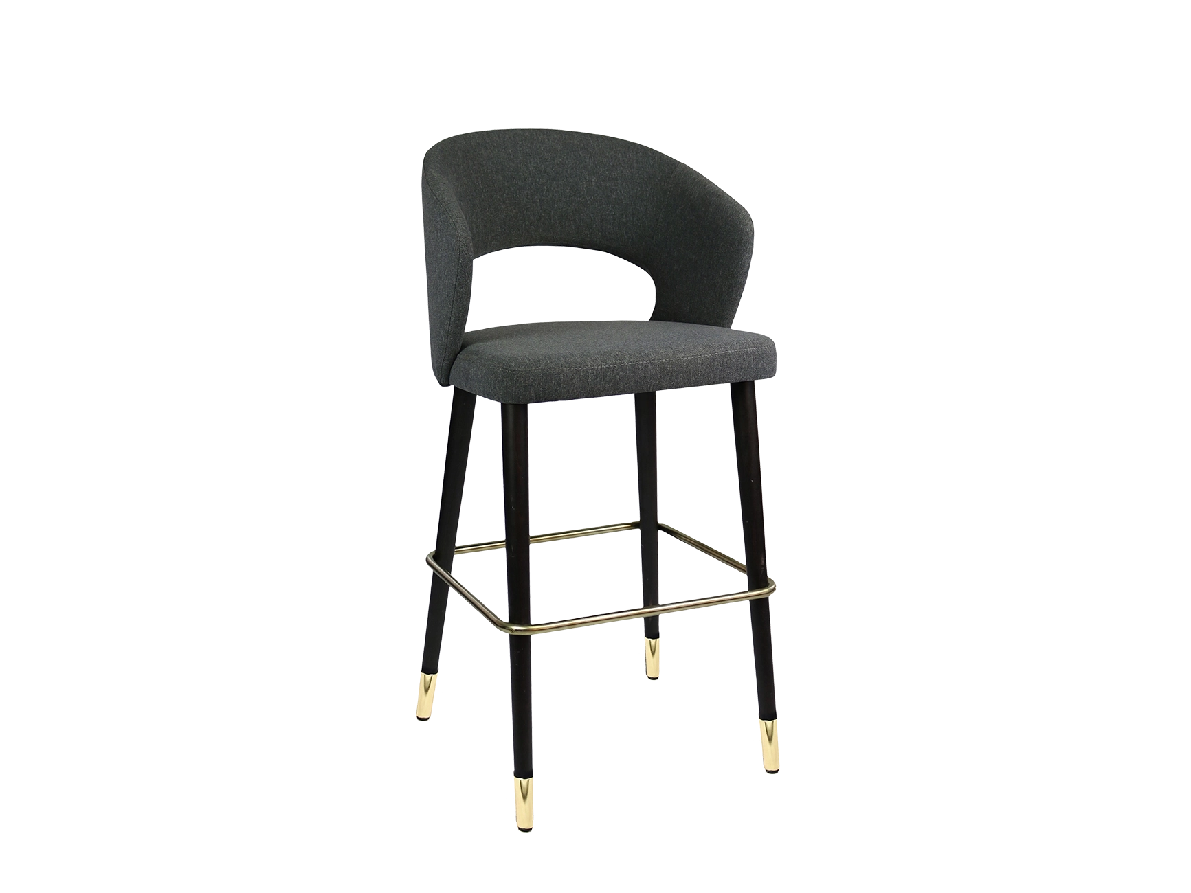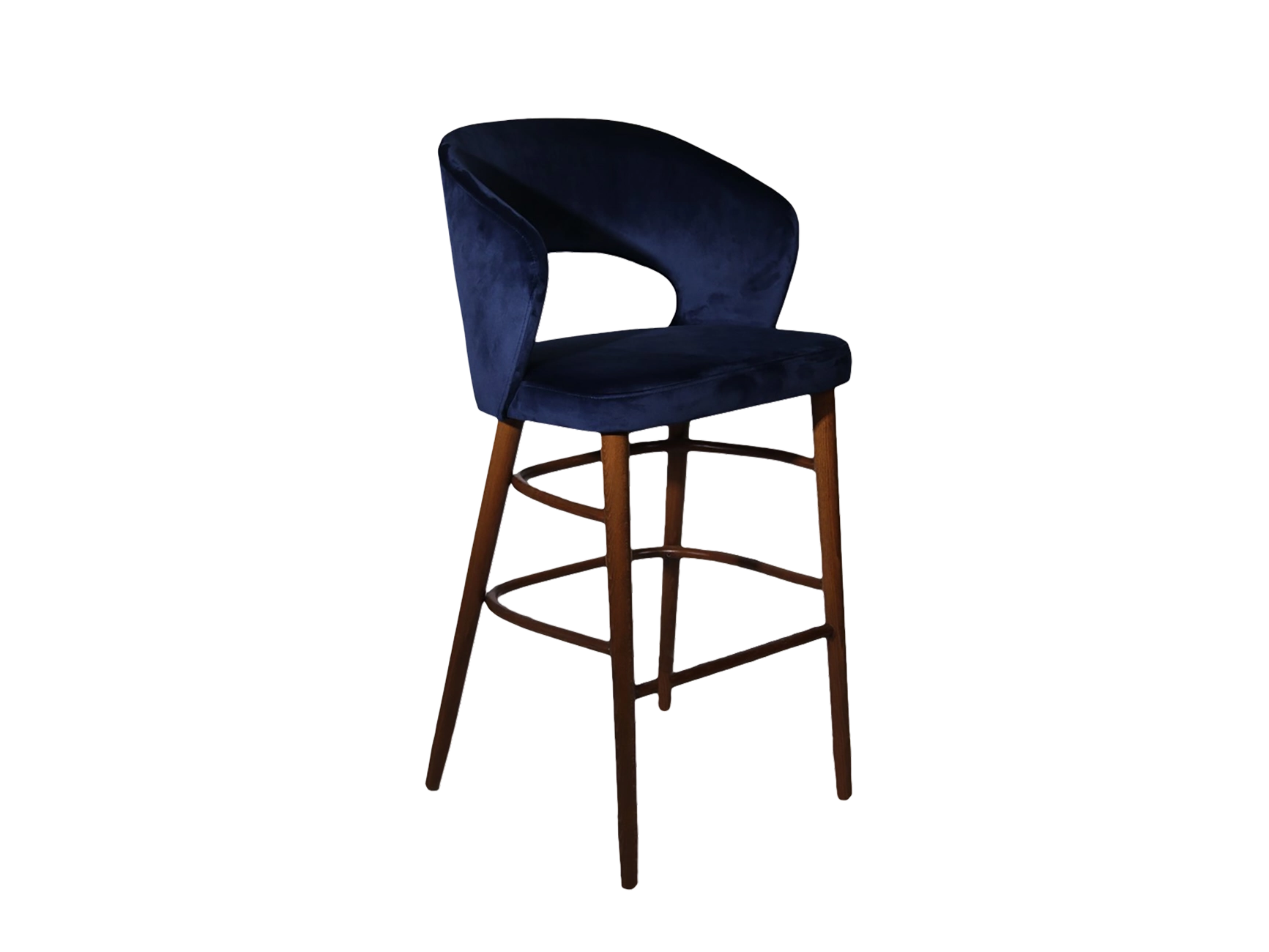 Bring mid-century modern charm into your hospitality area with the Horizon Air Barstool. Featuring an upholstered seat with low circular back and four tapered legs, this padded wooden bar stool will grant your decor a retro look and feel. Crafted from solid wood, this custom upholstered barstool sports an incredibly durable and long-lasting look. Your back will not be under any stress with the backrest on this tall, upholstered bar stool. Also, your feet can relax easily on the footrest.