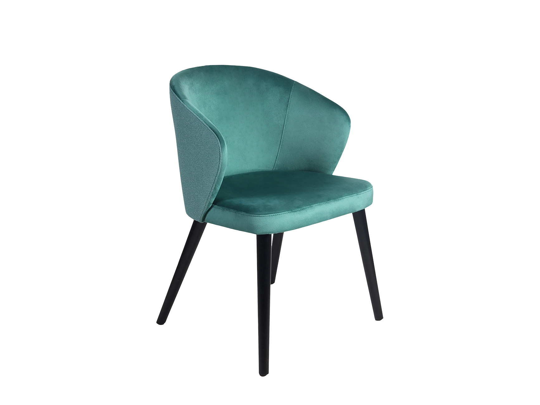 A curved back fine dining chair with tapered beech stained legs. Available in all standard upholstery ranges and wood stains.