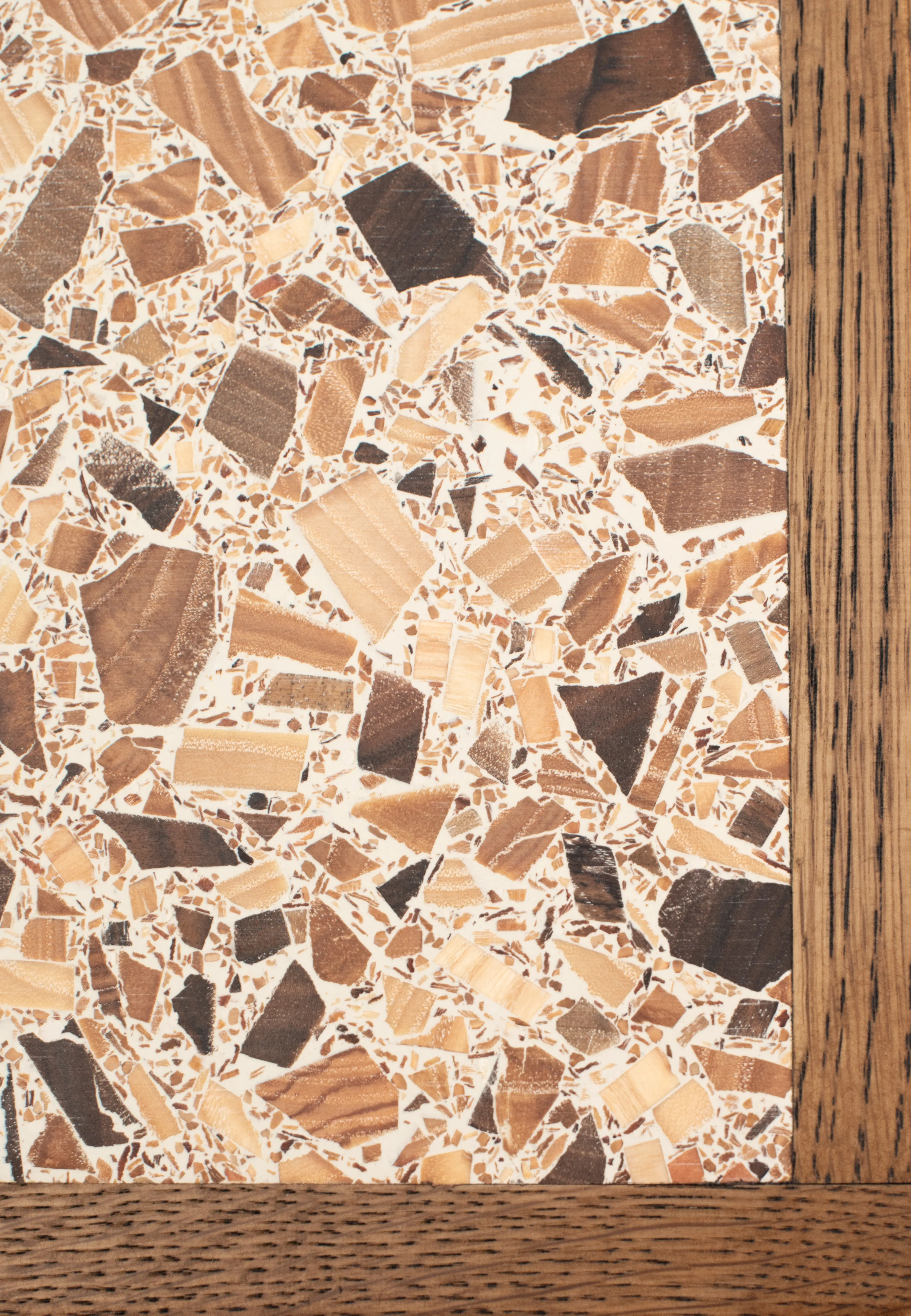 Our Hoxton tabletop is manufactured from recycled wood and finished with a solid oak eased edge. Shown here in Ivory, it is available in a wide range of colours. Please contact our team for additional tabletop options.