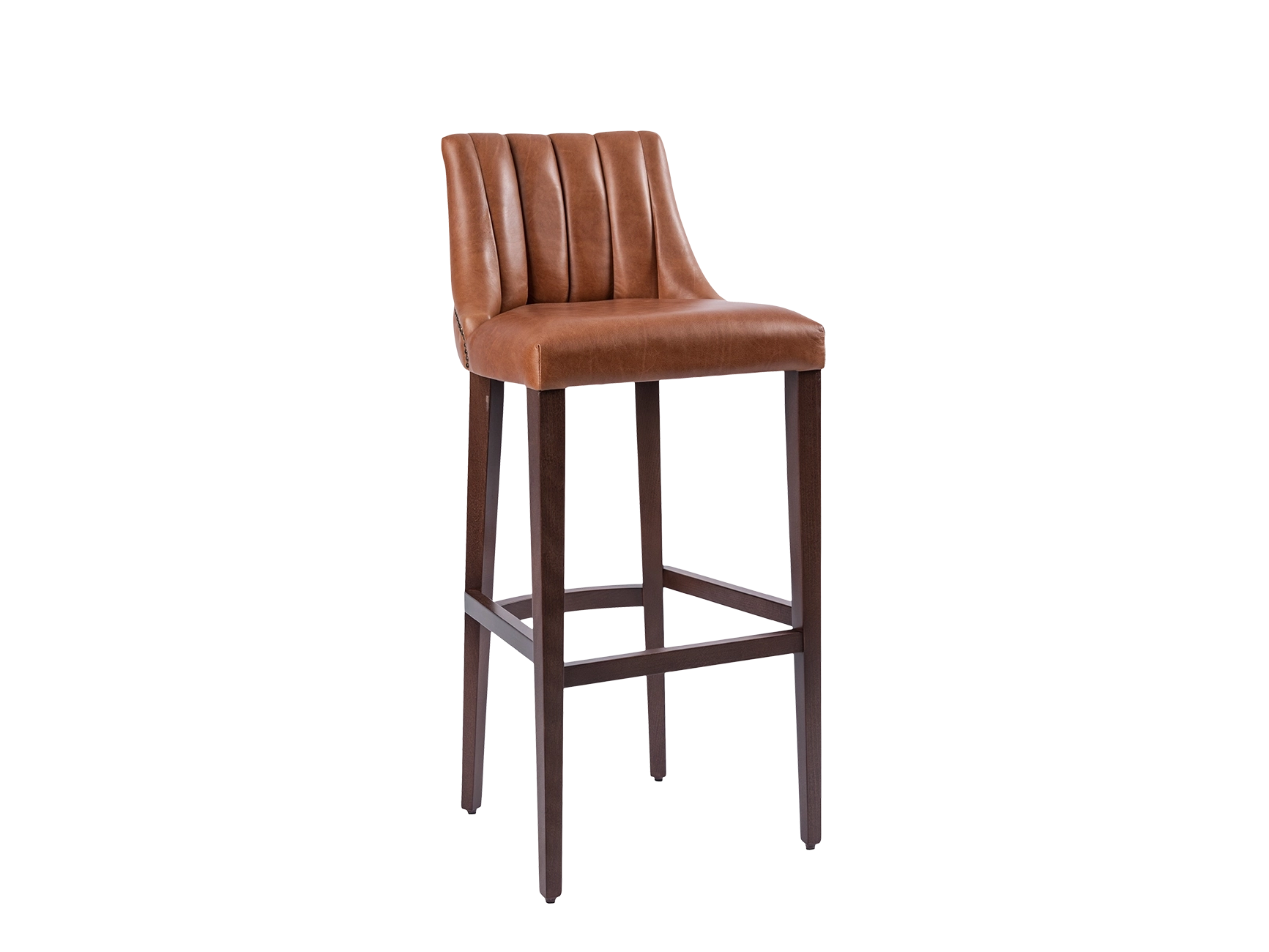 The Madison Barstool features four wooden legs, a faux leather upholstered seat, and a back with bold vertical channel tufting. In addition, this classic wooden barstool has an integrated footrest, ensuring it is as comfortable as it is stylish. Available in a wide range of fabric options, this commercial bar stool is the perfect seating option for a smart bar area in your hotel, cafe or restaurant.