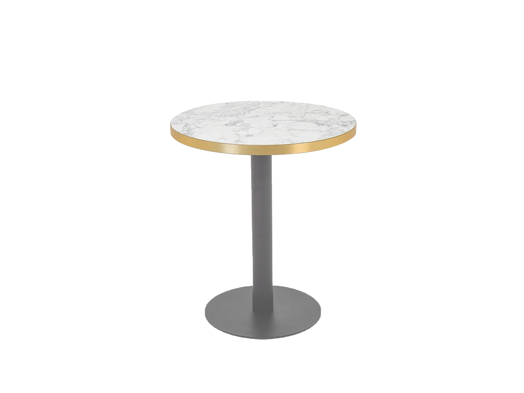 Grey veined white marble laminate, with a brass effect edge. Edge also available as black or matching marble effect.