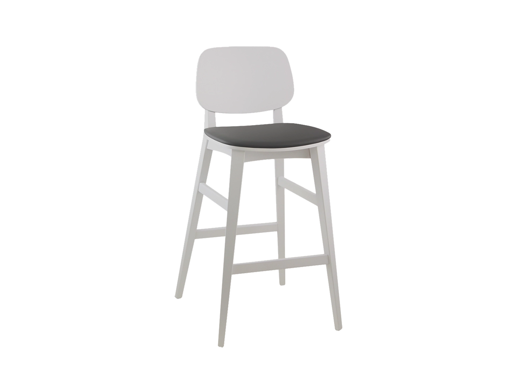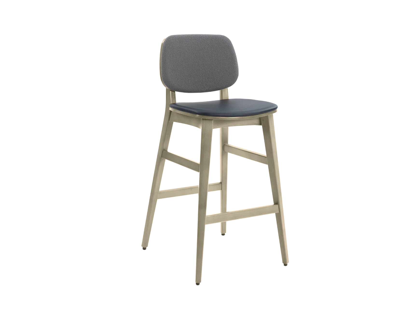 With a luxurious seat back, the Mel Barstool is ideal for upmarket bars, hotels, and pubs. This elegant barstool comprises a solid beechwood leg frame with a footrest and a comfortable upholstered seat and back pad. The leg frame is available in natural wood finishes or in any colour from our standard range. We can create this barstool with a wooden seat and back, with an upholstered seat, and a wooden back or with an upholstered seat and back. The Mel Barstool is fully bespoke, and you can choose from high-quality faux leather or fabrics, as well as different wood stains for the frame.