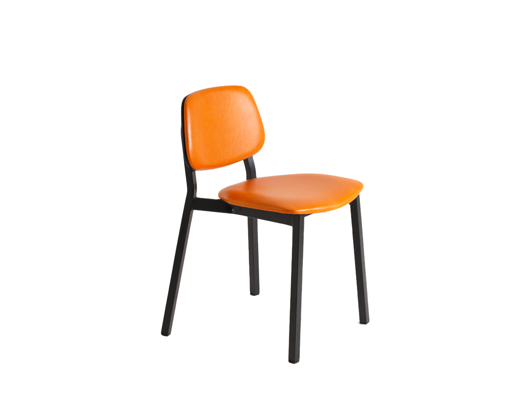 Our Metal Evo Stacking Chair features a durable metal frame that can be powder coated in any classic RAL colour. The seat and back can be specified in two configurations: fully upholstered in a contract-grade fabric of your choice, or finished in painted or stained timber for a simpler appearance. The design is stackable for efficient storage.