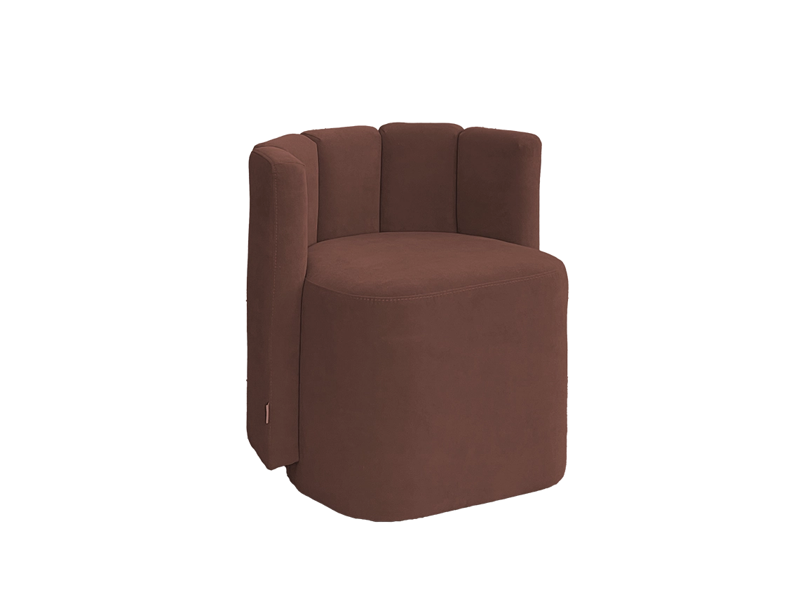 A statement lounge chair that features a fluted upholstered back design. An elegant cocktail chair for style and comfort. Customize upholstery and base finish to suit your space.